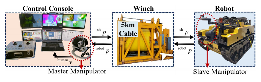 最终团队通过仿真实验验证了UTFMP在演示分割、模仿学习和调制方面的有效性。并搭建了一套如图5所示的5km遥操作机器人实验平台来进行模仿学习与共享控制实验验证,与传统速度控制相比,采用该共享控制方法的轨迹平滑度和精度分别提高了24.38%和9.48%,控制时间减少了16.56%。