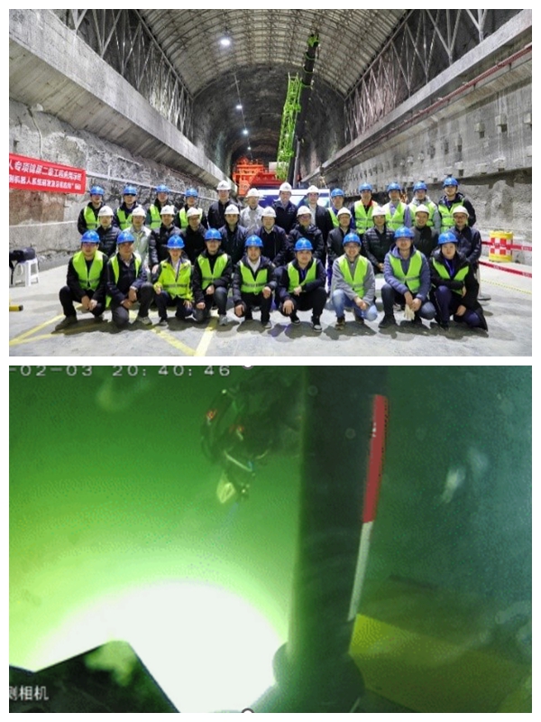 基于团队所提出的机器人操作技能学习及共享控制算法,依托于国家重点研发计划《大直径长引水隧洞水下检测机器人系统研发及示范应用》,上述超远距离水下遥操作机器人已于2022年11月及2023年2月,分别于南水北调穿黄隧洞、雅砻江锦屏二级引水隧洞完成机械臂共享控制遥操作探查隧洞缺陷的示范应用,其中在锦屏二级引水隧洞完成3000m行走及探查,创造国内引水隧洞探查新纪录,充分验证了算法的稳定性及高效性,为水利设施的维护与升级提供了高效、智能的新解决方案。