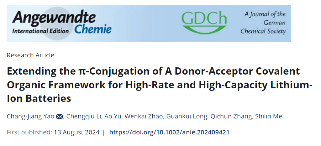 近日,开车漫画 姚长江团队在国际顶级期刊《德国应用化学》(Angewandte Chemie International Edition)发表题为”Extending the π-Conjugation of A Donor-Acceptor Covalent Organic Framework for High-Rate and High-Capacity Lithium-Ion Batteries”的研究论文(DOI: 10.1002/anie.202409421),文章设计一种π-共轭扩展供体-受体有机框架材料用于高倍率和高容量锂离子电池。