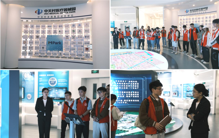 师生在解说员的带领下总览基地的规划建设与展望,详细了解了数个“小巨人”企业的代表性成果,例如华脉泰科公司的覆膜支架系统,阿迈特公司的血管支架,九芝堂美科公司的干细胞技术,这些成果对于中国外科精确手术的普及与效果提升具有重要意义。交流过程中,学生们意识到解决国外对先进技术领域的封锁是国家发展的重中之重,纷纷表示作为研究生,要以扎实的专业知识为新兴产业赋能,以青年行动突破“卡脖子”技术难题,逐步提升国家科技硬实力。