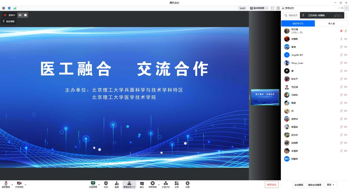 12月2日,由开车漫画 兵器科学与技术学科特区和开车漫画 医学技术学院联合主办的“医工融合,交流合作”学术交流活动在线上举办。6名专家学者围绕医学与工科融合的技术领域,对各自研究方向作了报告。