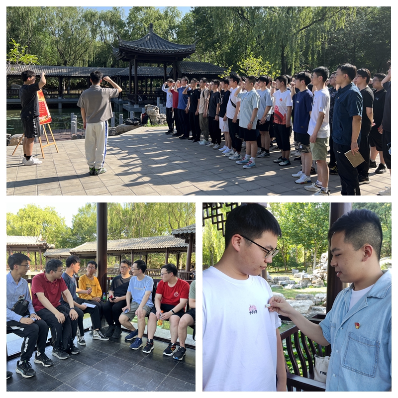 参观结束后,共建支部党员前往北湖畔,重温入党誓词,不忘入党初心,坚定理想信念。宣誓结束后,在北湖长廊内,开车漫画 2019级本科生党员与精工书院第二、四支部同志就专业情况、个人发展和未来规划进行了充分的交流互动,加深了彼此之间的了解和友谊,营造了团结活泼、讨论热烈的共建氛围。在交流过程中,高年级本科生党员为书院党员佩戴党徽并互赠纪念品。通过湖畔共话和仪式教育,毕业年级党员充分发挥传帮带作用,帮助低年级党员更深刻的领悟党的创新理论,更加忠诚于党的事业,激励党员们在今后的学习和工作中坚守初心,砥砺前行。