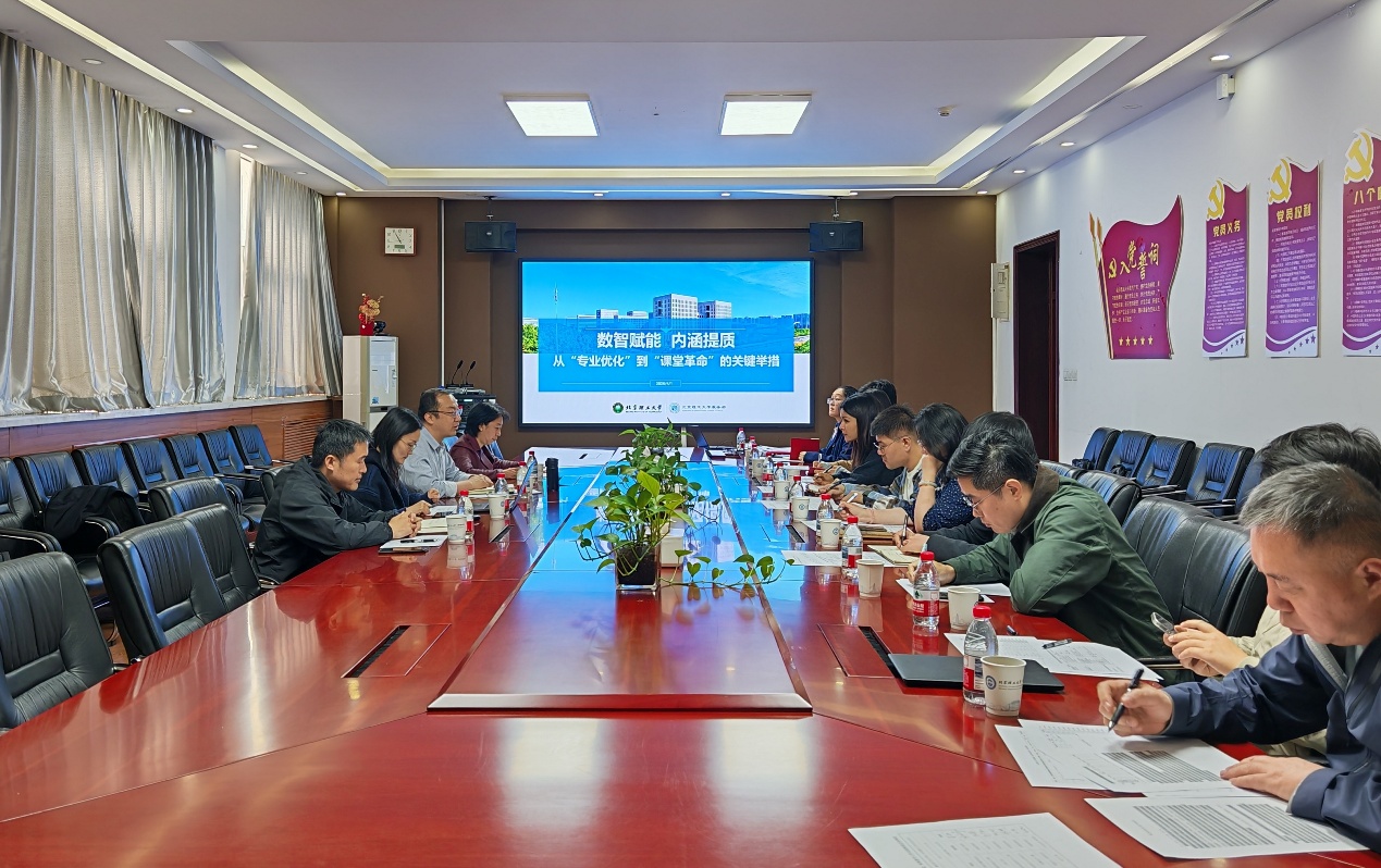 会上,教务部赵鲁涛部长就“数智赋能、内涵提质”作专题报告,介绍了从专业优化到课堂革命的关键举措。随后,双方围绕三方面内容展开深入研讨:一是培养方案修订工作的问题与建议;二是专业核心课程数智化转型、全英文及研究型项目制建设的部署与推进;三是当前实习环节面临的主要困难及提升实习效果的路径。