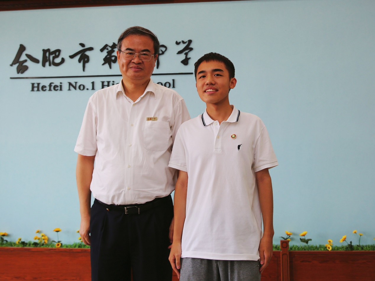 座谈会后,张军与合肥一中学子互赠校徽。