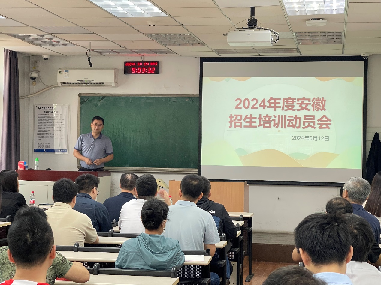 会上,黄广炎副院长回顾了去年的安徽省的招生情况,着重介绍了今年招生政策上的变化,提出了多个方面的注意事项,并对招生工作进行了具体要求。