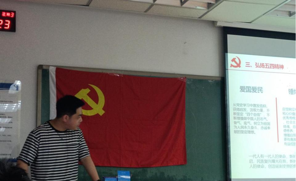 研究生机电第一党支部书记于子博以“学五四精神 做新时代青年”为题,讲解了五四运动的基本情况、影响意义和以爱国主义为核心的五四精神的具体内容,通过习近平总书记给农业大学科技小院的同学们的回信和陈荩民先生的事例,与同志们一起探索如何做一名新时代青年党员。